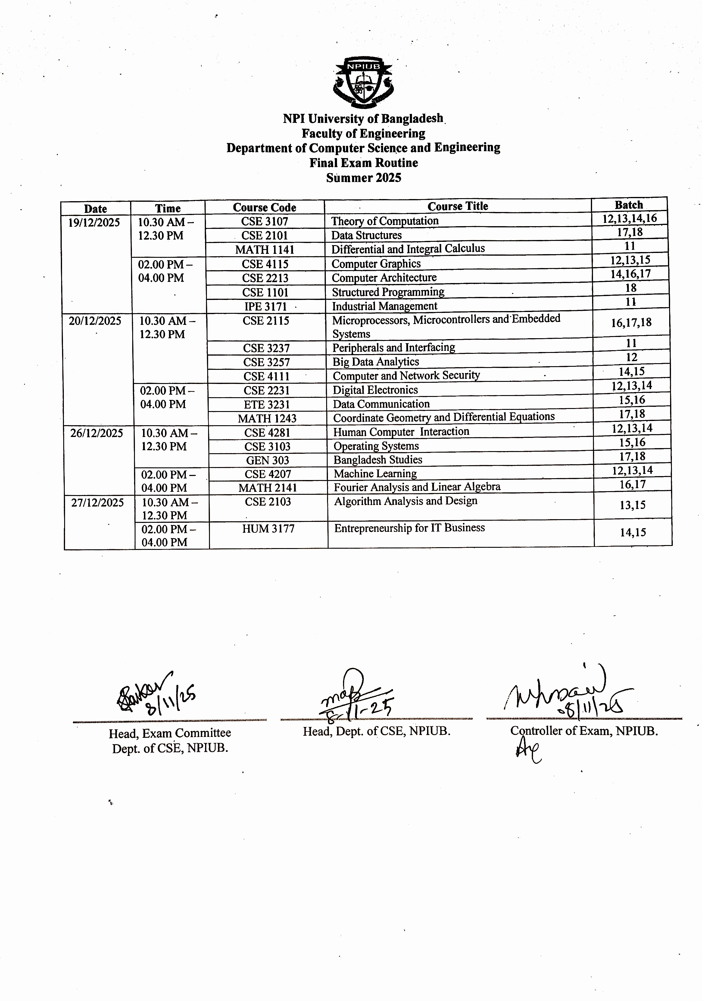 Final Exam Routine Summer-2025